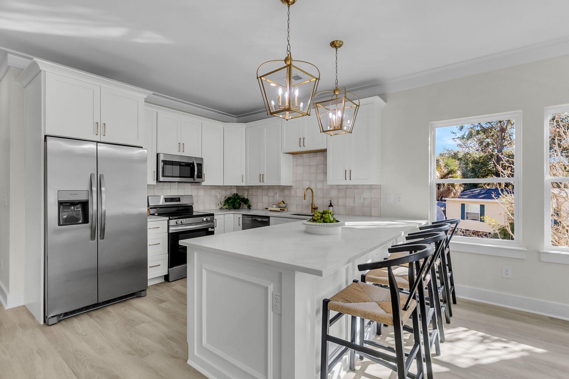 Modern Coastal Living in the Riverfront Community! Welcome to this beautifully crafted elevated coastal home located in the Riverfront community, where thoughtful design meets Lowcountry charm. Built with a tall, vertical footprint and raised construction, this home offers both style and function, perfectly suited for modern coastal living. Inside, you'll find a light-filled, open-concept floor plan accented by luxury plank flooring, designer lighting, and refined trim details throughout. The heart of the home is the stunning kitchen, featuring crisp white shaker cabinetry, quartz countertops, stainless steel appliances, ideal for entertaining or casual dining. Warm brass fixtures and statement pendants add an elevated, designer touch. The livingand dining spaces flow seamlessly, creating a welcoming atmosphere filled with natural light and coastal-inspired finishes. Spacious bedrooms offer comfort and privacy, while spa-like bathrooms showcase beautiful tilework, glass-enclosed showers, and modern fixtures.The home's raised design provides ground-level garage and storage, while the fenced backyard offers room to relax, entertain, or enjoy the coastal breeze beneath mature trees.Residents of the Riverfront community enjoy exclusive access to riverfront amenities, including fishing areas reserved for homeowners, adding to the appeal of this peaceful, nature-surrounded setting.This home combines modern coastal design, quality craftsmanship, and an exceptional location an ideal opportunity for those seeking a stylish Lowcountry lifestyle.